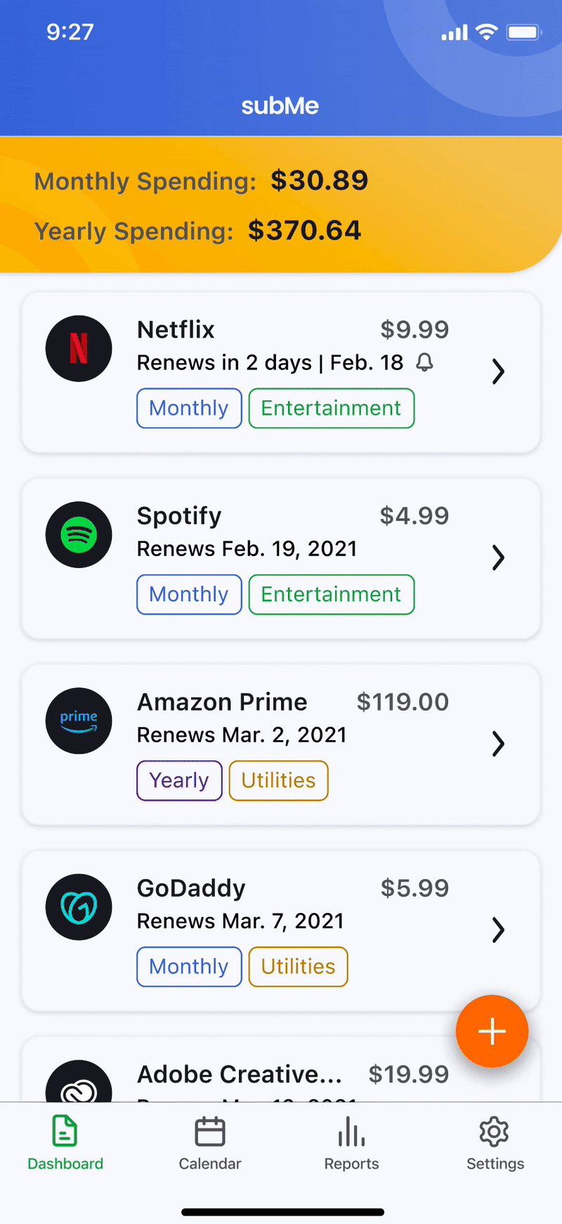 Provide multiple ways of viewing their subscriptions (Dashboard/list view, Calendar, and Reports/Charts)